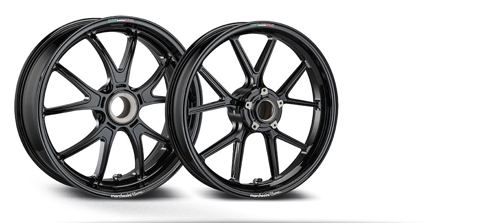 La M10RS Corse porta con sé tutta l’esperienza Marchesini nel racing. Nasce una ruota senza compromessi, progettata per il campione come per l’appassionato che desidera il top assoluto per il proprio mezzo. Il peso del set (le due ruote montate) è di soli 7,6 Kg.